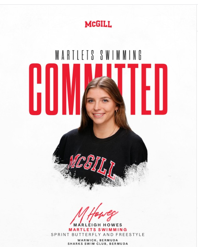 The McGill University women’s swimming and diving program has secured a significant talent for their 2026 entry class, announcing the signing of Bermudian standout Marleigh Howes.