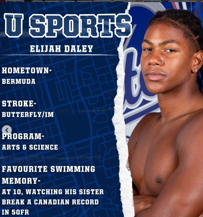 "Honestly, for me, it was such a great experience competing at U Sports and racing against the fastest swimmers in Canada," Daley said. "I’m really happy with the progress I’ve made this season. I was able to break the Bermuda national record in the 200 fly, 100 fly, and also 200 IM, which is something I’m very proud of."